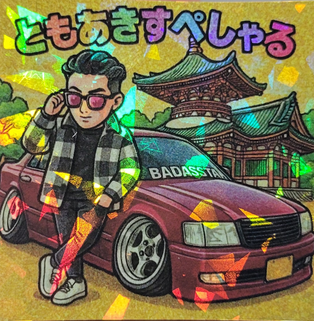 ともあきすぺしゃるホログラムステッカーが登場しました。このステッカーは、鮮やかなホログラムデザインが特長で、さまざまなアイテムにアクセントを加えることができます。サイズは5cm×5cmの正方形で、カジュアルなアイテムからインテリアまで幅広くお使いいただけます。あなたのスタイルや個性を手軽に表現できるアイテムとして、ぜひ手に入れていただきたい一品です。